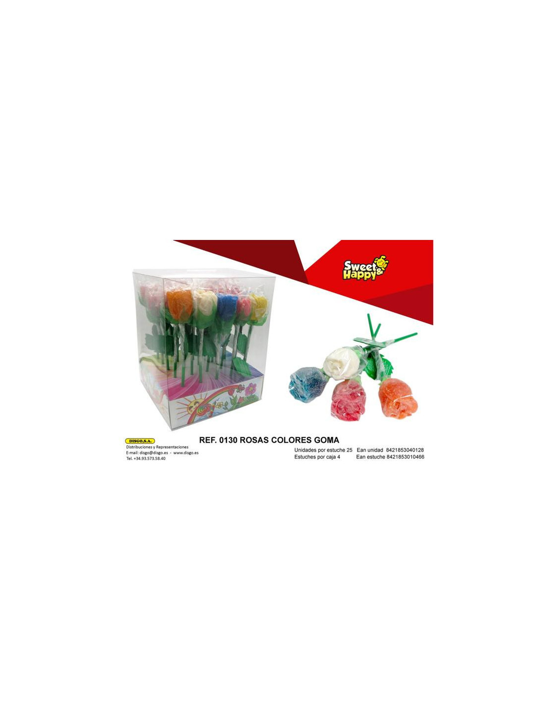 PIRULETAS DISGO ROSAS COLORES GOMA 25UDS